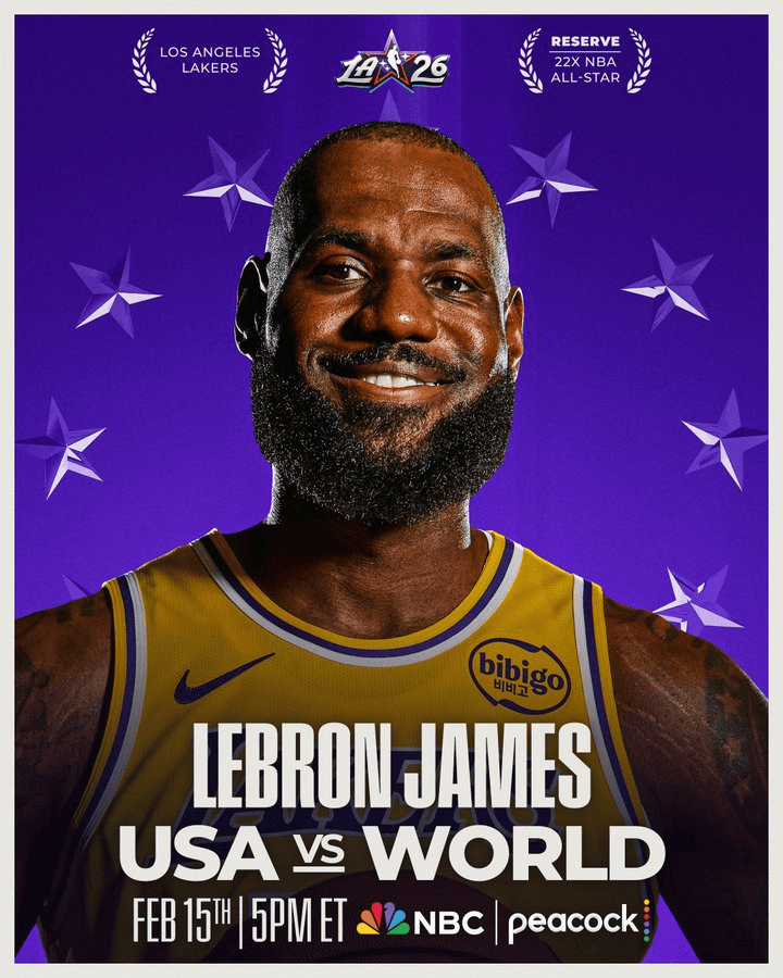 搜狐体育消息,北京时间2月2日,NBA官方公布了全明星替补阵容,詹姆斯入选。